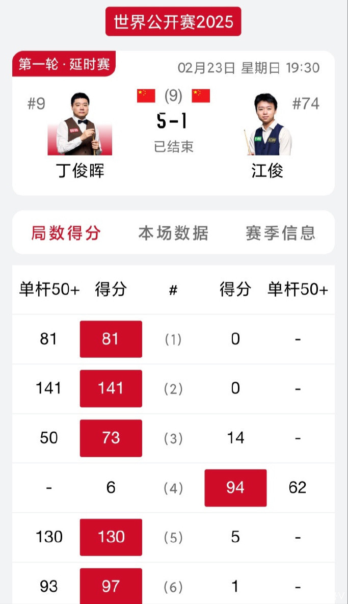 2025年参加玉山宇宙公开赛之前,丁俊晖仍是休息了很万古间。插足2025年后,丁俊晖只参加了众人赛的争夺,那时在第一轮与3届世锦赛冠军“金左手”马克-威廉姆斯的比赛中,以6-5险胜晋级。