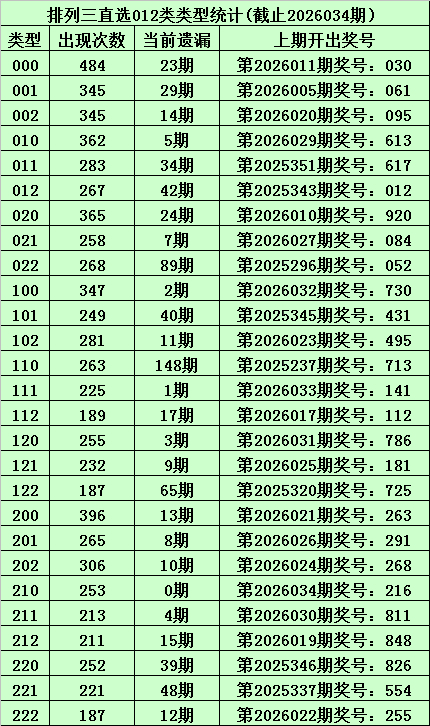 上期转头:体彩罗列三第2026034期开出奖号:216,其012路比为1:1:1体育集锦,奖号012路类型为:210。