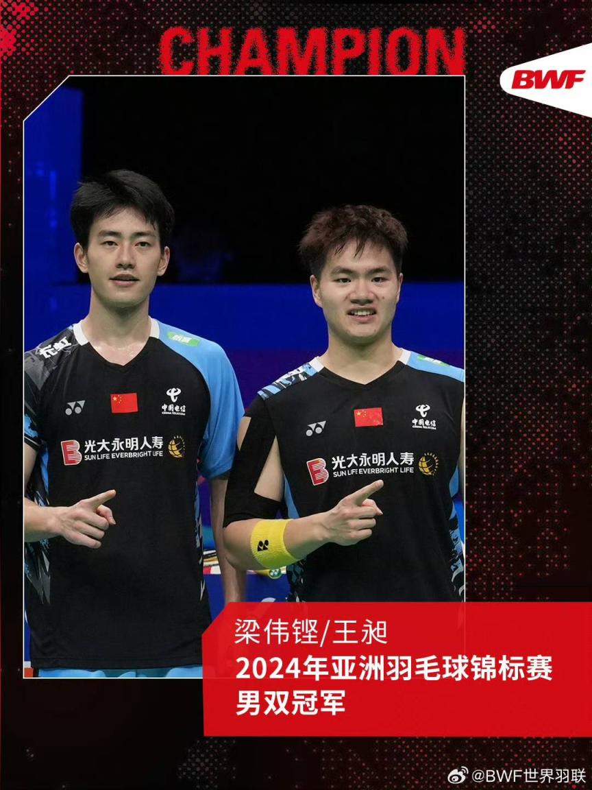 4月14日,2024年羽毛球亚锦赛在浙江宁波插足决赛日争夺。刚刚m6买球网登录充值,中国队组合梁伟铿/王昶以2-1慑服马来西亚队组合吴世飞/依祖丁,夺得男双冠军。