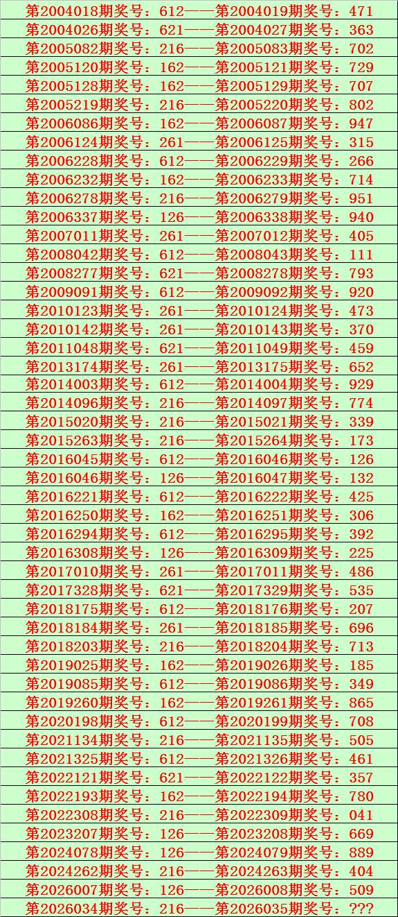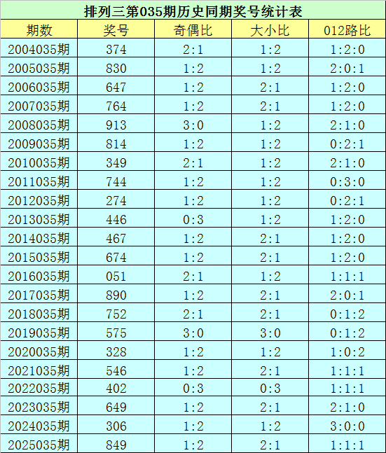陈设三第2026035期开奖日历:2026年2月4日,历史上第035期已开出了22次奖号,积年同时号码折柳为:374、830、647、764、913、814、349、744、274、446、467、674、051、890、752、575、328、546、402、649、306、849。